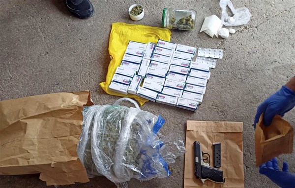 Policija je pretresom stana i drugih prostorija koje koristi osumnjičeni pronašla oko 2 kilograma materije za koju se sumnja da je marihuana, oko 53 grama materije za koju se sumnja da je amfetamin, 927 tableta sa liste psihoaktivnih supstanci i pištolj sa 7 metaka.